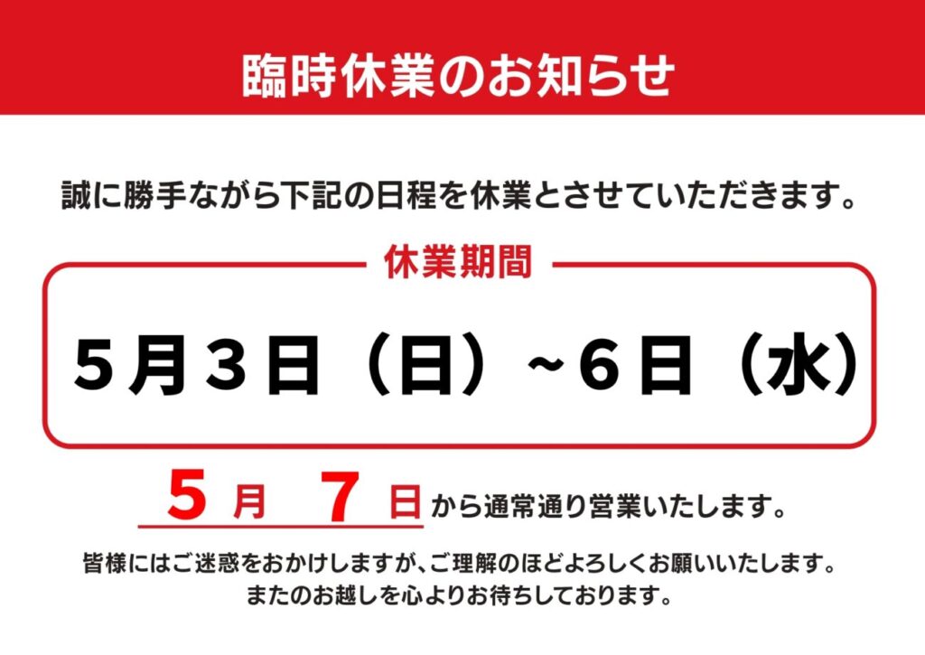 誠に勝手ながら、下記の期間を休業とさせていただきます。